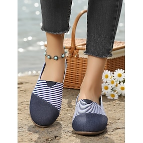 mocassini casual slip-on in tela a righe da donna - scarpe comode e leggere in stile nautico per donna, passeggiate, gite in spiaggia, viaggi, shopping &abbigliamento quotidiano