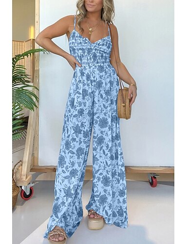 Per donna Salopette Attivo Floreale Senza Maniche Senza maniche Gamba larga Collo quadrato Tasca Bottoni Quotidiano Spiaggia Vestibilità comoda Blu Rosa Cachi Estate