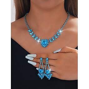 set di gioielli da donna con zirconi rosa: collana a cuore scintillante e orecchini pendenti per feste, matrimoni o eventi serali