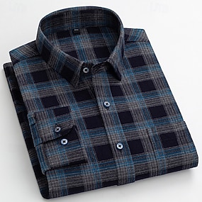 Per uomo Camicia Camicia casual Camicia a quadri Camicia con Bottoni Quadri All'aperto Abbigliamento quotidiano Blu marino Blu reale Blu Azzurro cielo Manica Lunga Bavero Autunno & Inverno
