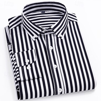 Per uomo Camicia Camicie Camicia con bottoni Strisce Matrimonio Feste Blu navy + bianco Nero Bianco Giallo Manica lunga Bavero Primavera Autunno Abbigliamento Tasche