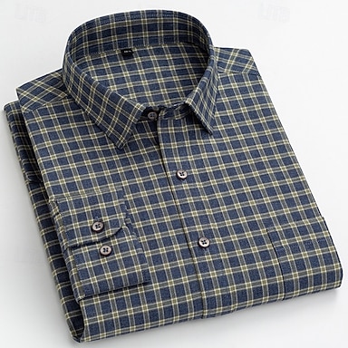 Per uomo Camicia Camicie Camicia con bottoni A quadri Matrimonio Giornaliero Rosso Blu marino Blu Cammello Manica lunga Collo ripiegabile Primavera Autunno Abbigliamento Bottoni