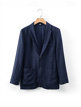 Per uomo Giacca blazer Blazer di Lino Colletto ad incastro Moda Casual Tinta unita Blazer Nero Azzurro cielo Blu scuro Vestibilità standard Monopetto Un Bottone