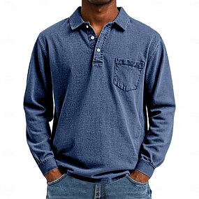Per uomo Polo Polo da Golf Streetwear Affari Classico Manica Lunga Vintage Essenziale Tinta unica Semplice Tasca Stile Vintage Autunno Inverno Interstagionale Vestibilità regolare Marrone scuro Nero