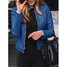 Per donna Giacca in Ecopelle Giacca Casual Confortevole Traspirante Cerniera Casual Semplice Casuale Vacanza Streetwear Abbigliamento quotidiano Cerniera Corto Collo alla coreana Vestibilità regolare