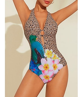 costume da bagno bikini a triangolo con anello floreale leopardato