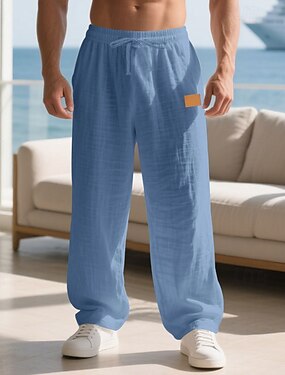 Per uomo Pantaloni di Lino Pantaloni Estivi Pantaloni da Spiaggia Coulisse Elastico in vita Gamba Dritta Semplice Comodità Traspirante Lunghezza intera Casuale Quotidiano Spiaggia Vacanza Moda Blu