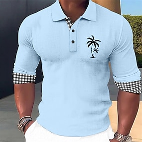 Per uomo Palma Magliette Polo a Nido d'Ape Testurizzato Manica Corta Magliette polo Camicie con Colletto Resort Business Casual Affari Athleisure Abbigliamento da vacanza Stampa 3D Bottoni Estate Blu