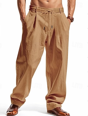 Per uomo Pantaloni di Lino Pantaloni Pantaloni Estivi Pantaloni da Spiaggia Tasca Coulisse Elastico in vita Semplice Comodità Traspirante Vacanza Quotidiano Ferie Hawaiano Boho Beige