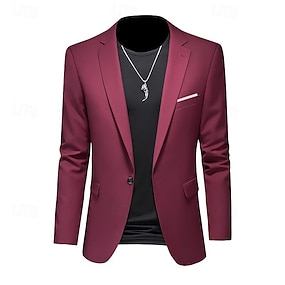 Per uomo Blazer Affari Cocktail party Ricevimento di matrimonio Moda Casual Primavera & Autunno Poliestere Rosa Tasca Bottoni Confortevole Monopetto Giacca Nero Bianco Borgogna Blu reale