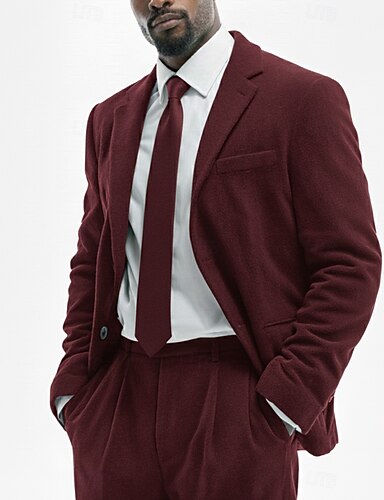 Uomo Completi in Tweed Casuale Affari Nero Borgogna Autunno & Inverno Tuta Bavero classico Affari Formale Tinta unita Vestibilità su misura 2 pezzi Monopetto Due Bottoni
