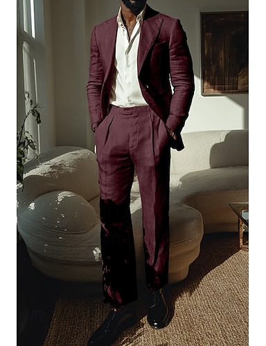 Uomo Completi in Lino Matrimonio in Spiaggia Casuale Bianco Borgogna Primavera & Estate Tuta Bavero classico Quotidiano Casual Tinta unita Vestibilità su misura 2 pezzi Monopetto Due Bottoni