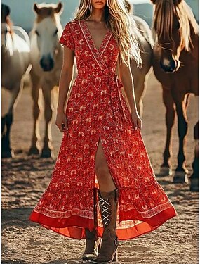Per donna Abito Midi Abito Boho Vestito Casual Elegante Vintage Moda All'aperto Vacanza Uscire Vestibilità comoda Paisley Senza Maniche Scollo a V Borgogna Grigio Estate Primavera