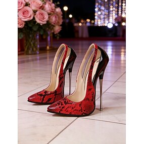décolleté da donna con tacco altissimo in pelle di serpente verde, scarpe a punta in stile stiletto per le feste notturne &pole dance