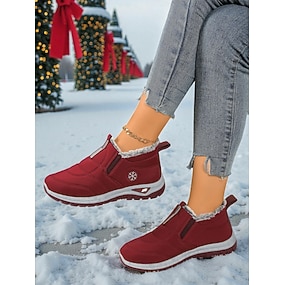 Sneakers invernali da donna in caldo pile foderate in bordeaux - comode scarpe da esterno comode e impermeabili slip-on per il freddo e i viaggi di Natale