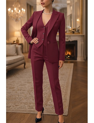 Per donna Abiti da 3 pezzi Formale Ospite di nozze Crepe Elasticizzato Elegante Semplice Minimalista Manica Lunga Lunghezza alla caviglia Risvolto a punta Monopetto