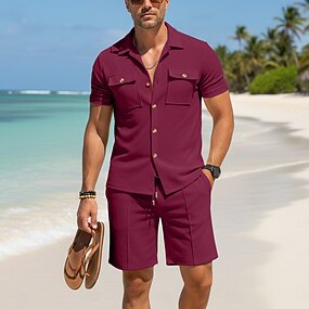 Per uomo Due pezzi Set Camicia Set estivo E Impostare Semplice Casuale Quotidiano Vacanza Colletto Manica Corta Pantaloni corti Estate Moda Casual Confortevole Abbigliamento