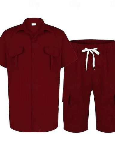 Per uomo Tessuto Due pezzi Set Camicia E Shorts Shorts da Spiaggia Impostare Semplice Casuale Quotidiano All'aperto Collo ripiegato Manica Corta Estate Moda Casual Confortevole Abbigliamento
