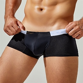 Per uomo 1 pc Mutandine sexy Boxer Pizzo Poliestere Traspirante Morbido Comodo Liscio A vita medio-alta Nero Bianco