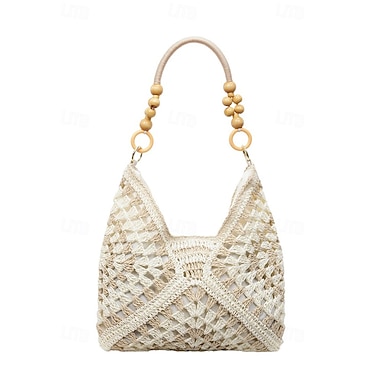 borsa tote da donna in paglia intrecciata, grande capacità con ciondolo a nappa, vari colori, elegante borsa casual da spiaggia e da viaggio per il tempo libero quotidiano