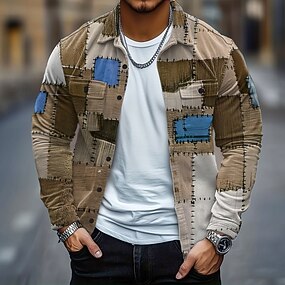 Per uomo Geometrico Blocco di colori Patchwork Camicia Camicia a nido d'ape Camicia casual Manica Lunga Moda Casual Abbigliamento Quotidiano Ferie Estate Primavera Collo ripiegato Stampa 3D