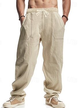 Per uomo Pantaloni di lino Pantaloni Pantaloni estivi Pantaloni da spiaggia A cordoncino Vita elastica Gamba dritta Liscio Comfort Traspirante Lunghezza intera Informale Giornaliero Per eventi Di