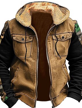 Per uomo Cowboy Pile Felpe con cappuccio Moda Cool Manica Lunga Con Cappuccio Ferie Caccia Marrone Verde Cerniera Tasca Autunno Inverno progettista