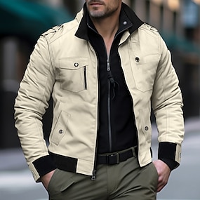 Per uomo Giacca utility Giacca Cargo Giacca Casual Vacanza Quotidiano Traspirante Tasca Primavera Autunno Bandiera Nazionale Moda Classico Collo alla coreana Regolare Nero Cachi Verde militare Giacca