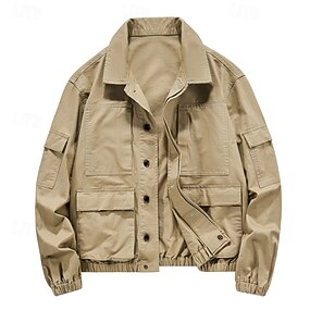 Per uomo Giacca Leggera Giacca da camionista Giacca da Lavoro Formale Casa Portatile Tasca Primavera Autunno Inverno Tinta unica Attivo Vintage Collo ripiegato Regolare Nero Verde Cachi Giacca