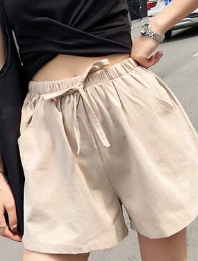 Per donna Pantaloncini in cotone e lino Pantaloni capri Chinos Shorts Vacanza Streetwear Casual Lunghezza al ginocchio Vita media Semplice Tasca Elastico in vita Traspirante Inelastico Quotidiano