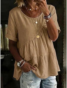 Per donna Maglietta Camicia in finto lino Arricciato Semplice Moda Elegante Classico Manica Corta Girocollo Top Regolari Quotidiano Uscire Weekend Blu Nero Bianco Giallo Rosa Estate Primavera