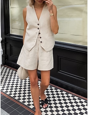 Per donna Set di Pantaloncini Finto cotone e lino Senza Maniche Scollo a V Tinta unica Moda Streetwear Casuale Quotidiano All'aperto Blu Nero Bianco Estate Vestibilità regolare