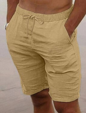 Per uomo Pantaloncini Pantaloncini in cotone e lino Pantaloncini estivi Pantaloncini da spiaggia Tasche A cordoncino Vita elastica Liscio Comfort Traspirante Breve Da mare Per eventi Spiaggia