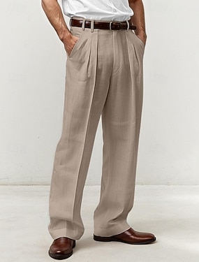 Per uomo Pantaloni di Lino Pantaloni Pantaloni Eleganti Pantaloni Estivi Tasca Gamba Dritta Semplice Comodità Traspirante Lunghezza intera All'aperto Affari Ricevimento di matrimonio Retrò Vintage