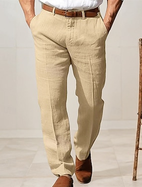 Per uomo Pantaloni di Lino Pantaloni Pantaloni Eleganti Pantaloni Estivi Pantaloni da Spiaggia Tasca Gamba Dritta Semplice Comodità Traspirante All'aperto Quotidiano Abbigliamento casual alla moda