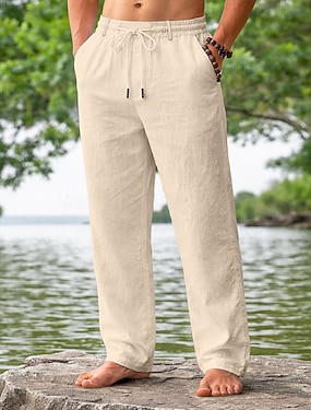 Per uomo Pantaloni di Lino Pantaloni Pantaloni Estivi Pantaloni da Spiaggia Coulisse Elastico in vita Gamba Dritta Semplice Comodità Traspirante Lunghezza intera All'aperto Casuale Quotidiano Moda