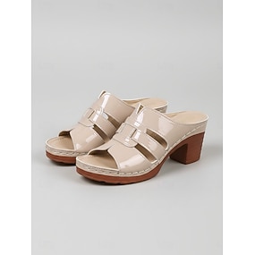 sandali beige da donna con tacco spesso e cinturini ritagliati – comode ciabatte casual con tacco per outfit estivi casual