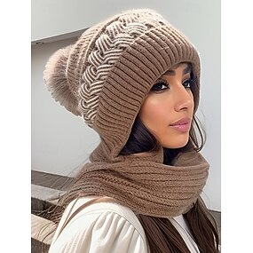 Set invernale da donna con cappello e sciarpa lavorati a maglia con pompon, berretto e scaldacollo 2 in 1 foderati in pile, accessorio caldo e accogliente per l'esterno, ideale per il freddo e come regalo di Natale