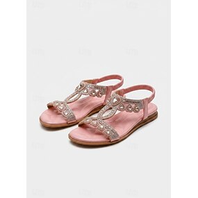 sandali boho rosa da donna con dettagli a forma di cuore in strass: ballerine eleganti e scintillanti per l'estate, la spiaggia e le vacanze