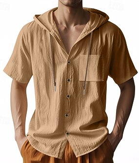 Per uomo Camicia Camicia di lino Camicia Estiva Abbigliamento da spiaggia Camicia con Bottoni Tinta unica Vacanza Streetwear Nero Bianco Blu marino Azzurro cielo Maniche Corte Con Cappuccio Estate
