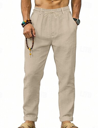 Per uomo Pantaloni di Lino Pantaloni Pantaloni Estivi Pantaloni da Spiaggia Coulisse Elastico in vita Tinta unica Comodità Traspirante Lunghezza intera Quotidiano All'aperto Spiaggia Vacanza Moda