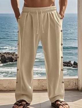 Per uomo Pantaloni di lino Pantaloni Pantaloni estivi Pantaloni da spiaggia Bottoni Tasche A cordoncino Liscio Comfort Traspirante Da mare Giornaliero Per eventi Hawaiano Boho Nero Bianco