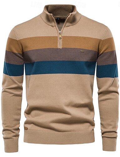 Per uomo Felpa Maglione Maglieria A Coste Maglia Top Regolari Cerniera Blocco di colori Collo ripiegato Maglieria Neutro All'aperto Abbigliamento Primavera & Autunno Nero Blu marino S M L