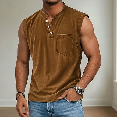 Per uomo Canotta Maglietta smanicata Canottiera Maglietta senza maniche Senza Maniche Henley Estate Primavera Semplice Moda Designer Essenziale Tasca Tinto in capo Bottoni Casuale Vacanza Streetwear