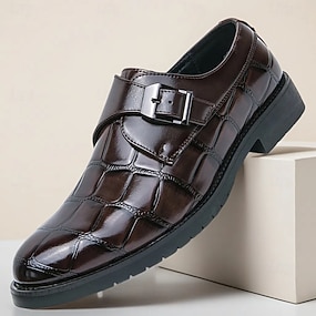 Scarpe eleganti da uomo con cinturino alla caviglia in similpelle marrone con motivo coccodrillo – eleganti calzature formali per ufficio e eventi aziendali