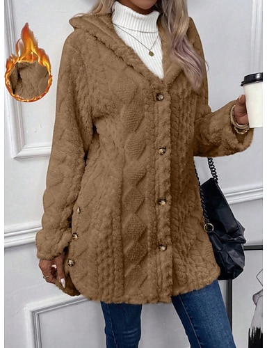 Per donna Giacca Sherpa Giacca Casual Confortevole Traspirante Tasca Bottoni Casual Semplice Vacanza Streetwear Casuale Abbigliamento quotidiano Aperto davanti Regolare Con Cappuccio Vestibilit