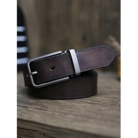 Cintura da uomo in vera pelle di vacchetta – cinturino marrone vintage con fibbia ad ardiglione in lega opaca, regolabile per jeans, lavoro, abbigliamento casual da lavoro e abbigliamento quotidiano