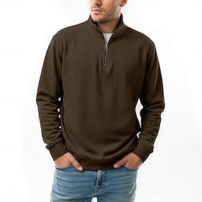 Per uomo Polo Sportivo Polo con zip a un quarto Strada Da mare Chiusura lampo quarto Manica lunga Di tendenza Essenziale Tinta unica Tasche Primavera & Autunno Standard Borgogna Verde Grigio scuro