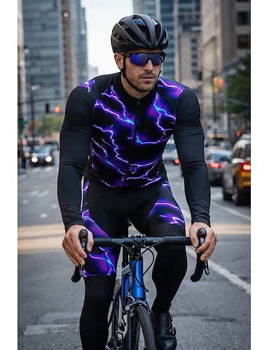 Per uomo Maglia da ciclismo con salopette Manica Lunga Mountain Bike MTB Ciclismo su strada Primavera Autunno Rosso Blu Viola Fulmini Bicicletta Traspirante Confortevole Spandex Gli sport