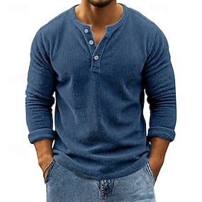 Per uomo Maglietta Camicia di Velluto a Coste Maglia Henley Camicia a Maniche Lunghe Manica Lunga Henley Primavera Autunno Semplice Moda Designer Essenziale Bottoni Vacanza Streetwear Uscire Nero